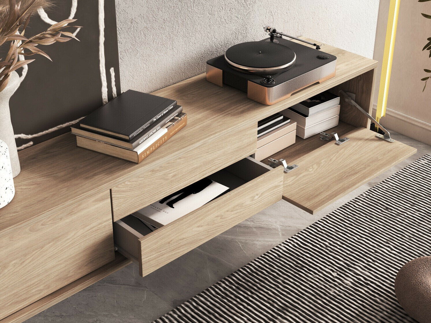 Åbn døre og skuffer med et enkelt tryk. "Push to open"-systemet består af en kombination af en fjeder og en magnetisk mekanisme til at trykke og holde døren. Også hængsler med særlige trykfjedre til at åbne døren. Takket være denne mekanisme har møblerne ikke brug for håndtag. Du kan åbne og lukke døre og skuffer med et enkelt klik.